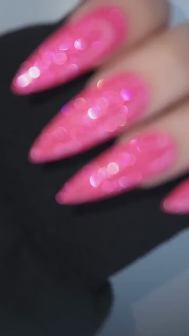 Barbie Pink Super Glitter Handmade Press on Nails - Luxury Reusable Fingernails S79